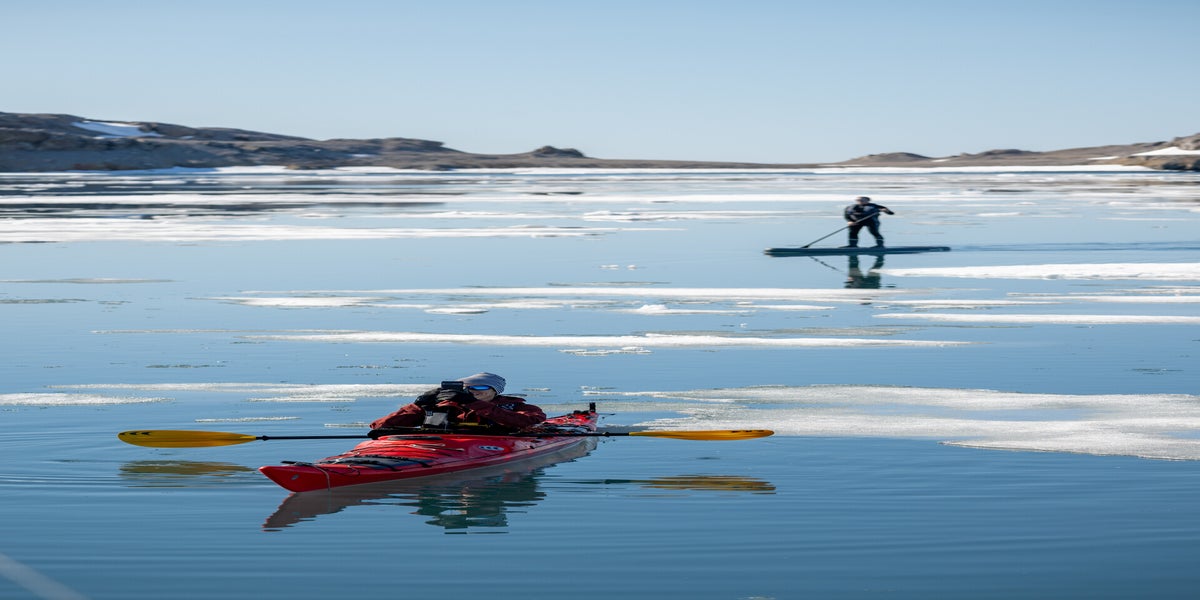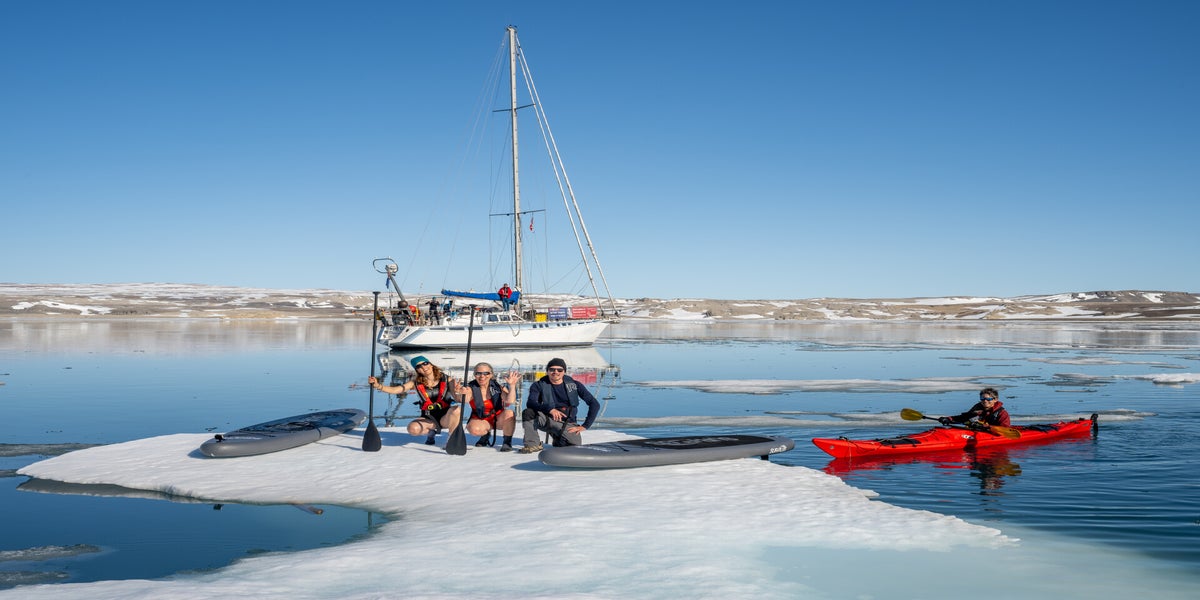 The warmth of the day tempted us all. Saeny, Hilde, and Andrea took to the SUPs in just bathing suits and life vests, navigating between ice blocks with ease. Inspired by their boldness, nearly everyone took the plunge, diving into the icy water for a refreshing and invigorating experience.